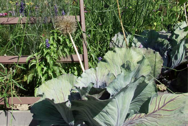 Vegetationsgruppe „Rotkohl“: Allium giganteum, Allium rosenbachianum, Brassica oleracea var. capitata f. rubra 'Rona'F1
