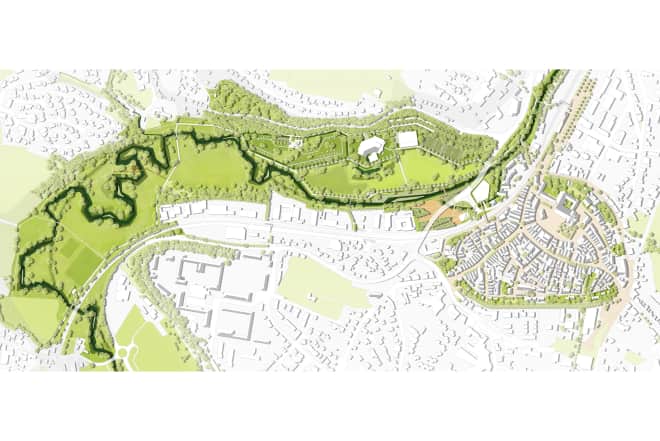 Wie werden wir morgen leben? Die Frage nach der Lebensqualität ist durch die Auswirkungen von Klimawandel und Artensterben hochaktuell. Das gilt in urbaner Sicht ebenso durch die Folgen des Bedeutungsverlusts vieler Innenstädte, den Wandel der Märkte und Arbeitswelten. Nicht nur aktuell, sondern auch konsequent ist es, eine Antwort darauf im Freiraum zu suchen. Das Areal der Landesgartenschau Ellwangen bietet dafür die Spezifik des Lokalen und die Gegebenheiten kulturellen Erbes sowie das Potential für Zeitgeist und Innovation. Indem beides – also Vergangenheit und Zukunft – als Strategie für die Gegenwart verknüpft werden, lehnt sich das Konzept an Aspekte der „Slow City“-Bewegung an. Damit zielt es auf Lebensqualität, Entschleunigung und Nachhaltigkeit, auf die Aktualisierung regionaler Identität als Grundlage attraktiver und zukunftsfähiger Lebenskonzepte. Das Konzept setzt damit auf die Verschmelzung von Tradition und Innovation.