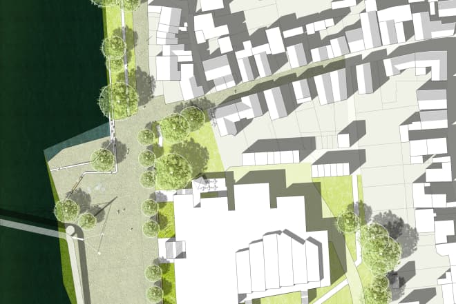 Dabei werden die Freiräume um den früheren und den neuen Brückenkopf als komplementäre Länden – also Landungsplätze – für die Bewohner und Gäste der Gemeinde entwickelt. So wird am Neuen Steg ein urbaner Raum ausformuliert („Urbane Lände“), während im Bereich des Alten Stegs landschaftliche Bezüge betont werden („Landschaftliche Lände“).
