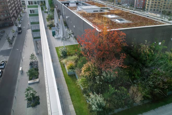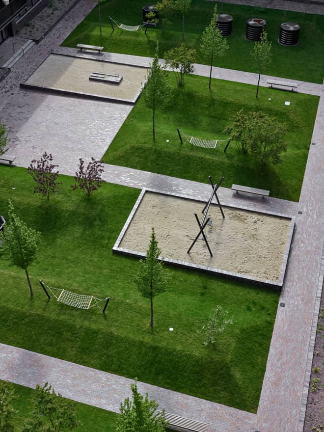 Das Quartier Heidestraße bildet den westlichen Teil der neugeschaffenen Europacity in Berlin-Mitte, die sich durch eine große bautypologische Vielfalt und markante Architekturen auszeichnet. Aufgabe der Freiraumstruktur des Quartiers ist in dieser Situation, stadträumliche Zusammenhänge zu vermitteln und identitätsbildende Orte zu schaffen. Im Kontrast zur reduzierten Formensprache der „äußeren“ Straßenräume und Plätze sieht das Konzept für die Dachgärten und Innenhöfe eine intensivere, formal differenzierte und betont vegetative Gestaltung vor.