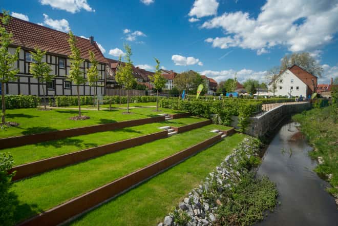 Die neuen Parkbereiche des Weinbergs und der Ihlegärten schaffen anstelle von Brachen außergewöhnliche Freiräume innerhalb der Altstadt entlang des Flusses Ihle. Auf der Erhebung des Weinbergs entstand über der neugepflanzten Rebanlage ein Stadtbalkon mit weitreichender Sicht auf die Stadtsilhouette. Die Ihlegärten greifen mit ihrer Kammerstruktur die Parzellengrenzen der früheren Bebauung dieses innerstädtischen Areals auf. Damit erhalten sie die räumliche Dichte und Heterogenität des Stadtquartiers aufrecht und schaffen Gartenräume, die unterschiedliche, wechselnde Nutzungen aufnehmen können.