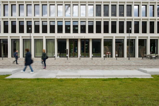 Das Konzept betont den Unterschied des Kunstcampus zu den meist überschaubaren, orthogonalen Platzflächen der neuentstehenden Europacity und zu den stark frequentierten Infrastrukturen der Invalidenstraße und der Heidestraße. Ziel war die Schaffung eines Ortes, der Verlangsamung zulässt und für Anwohnerinnen und Touristinnen das Potential eines Rückzugsraumes bietet. Dazu wurde in dessen Zentrum als markante gestalterische Geste ein urbanes Boskett ausformuliert. Konzipiert ist es als Folge von drei Teilräumen, die durch ihre trapezoiden Grundrisse mit abgerundeten Konturen aufeinander Bezug nehmen. Das nördliche und südliche dieser „Kabinette“ erhielt einen klar konturierten Rahmen aus hellem Granit, der in seiner Breite variiert und einen leicht eingesenkten und sanft modellierten Wiesenspiegel fasst. Die mittlere, als Spielort gestaltete Fläche wurde mit einer Hainbuchenhecke eingefasst. Verbunden sind diese drei Bereiche durch einen Hain aus ein- und mehrstämmigen Birken.