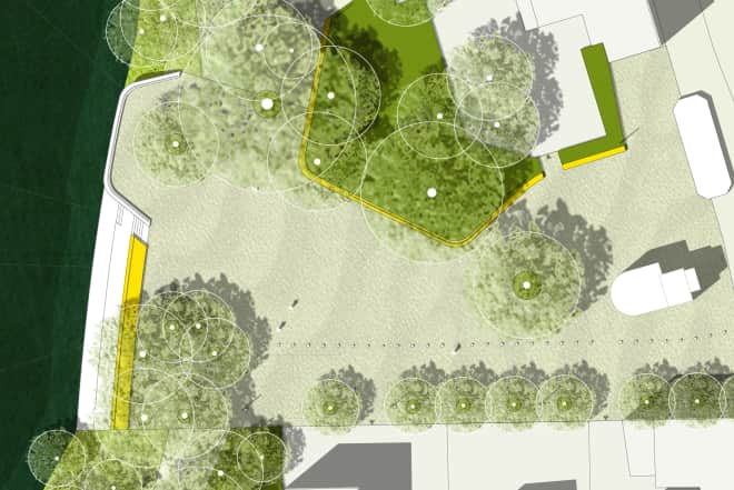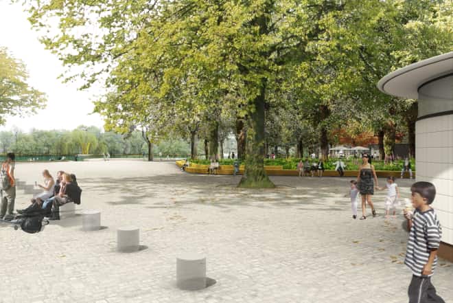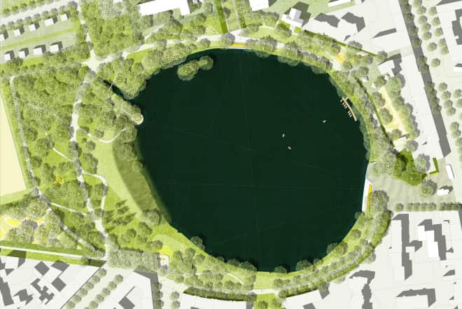 Die Übergänge des Parks zur Residenzstraße und zur Stargardtstraße werden als urbanes bzw. grünes Parkentrée ausformuliert. Die bestehenden Nutzungsangebote werden zu einem kohärenten und abwechslungsreichen Programm ergänzt. Dabei entstehen Orte für Spiel und Bewegung, ein kontemplativer Lesegarten sowie differenzierte Angebote zur Naturbeobachtung und zum Naturgenuss am Schäfersee.