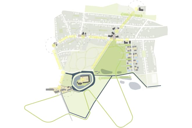 Die strukturreiche und heterogene Türnicher Schlossanlage und die sie umschließende, von Gegensätzen geprägte Kulturlandschaft lassen sich nach diesem Konzept als ein vielschichtiger Möglichkeitsraum entwickeln. Durch das Zusammenspiel ökonomischer, ökologischer, sozialer und ästhetischer Aspekte soll damit nicht nur die Zukunftsfähigkeit des Schlossensembles gewährleistet, sondern das Zukunftsensemble Türnich als Ideengeber für die Region etabliert werden. Dafür wird das Potential der Schlossanlage als eines historisch bedeutsamen Ortes in der Kulturlandschaft aufgegriffen, dessen Bedeutung durch neue Funktionen und gestalterische Maßnahmen aktualisiert und aktiviert wird.